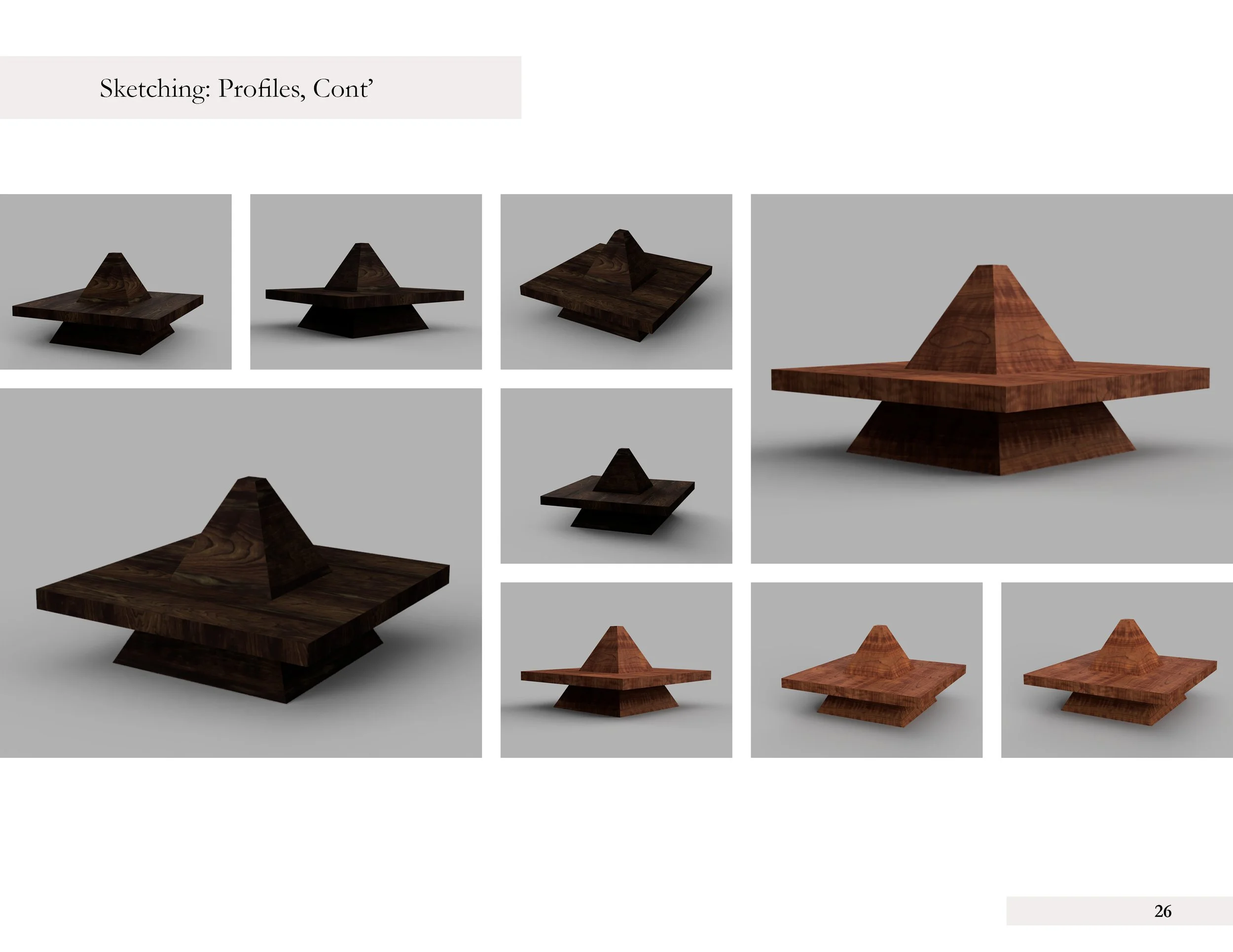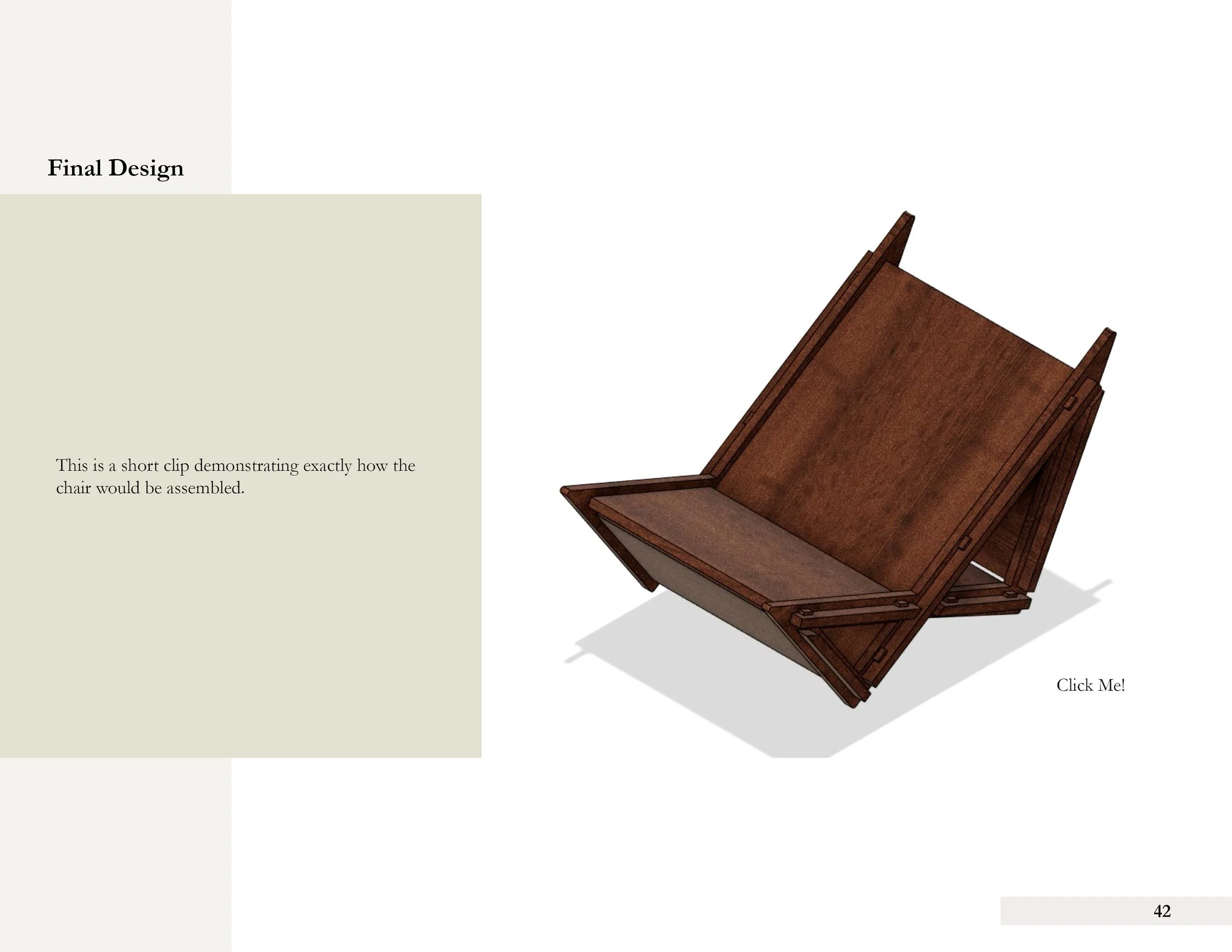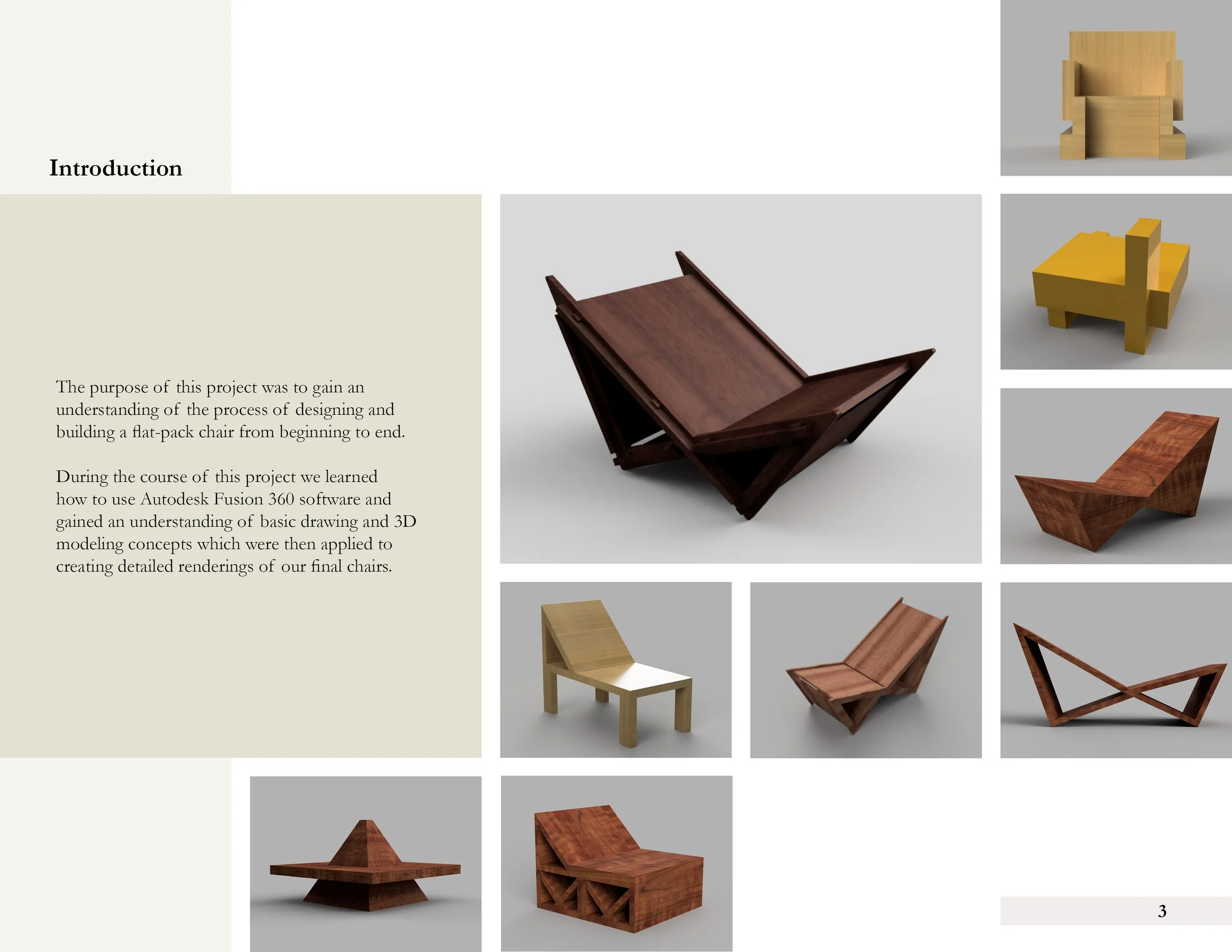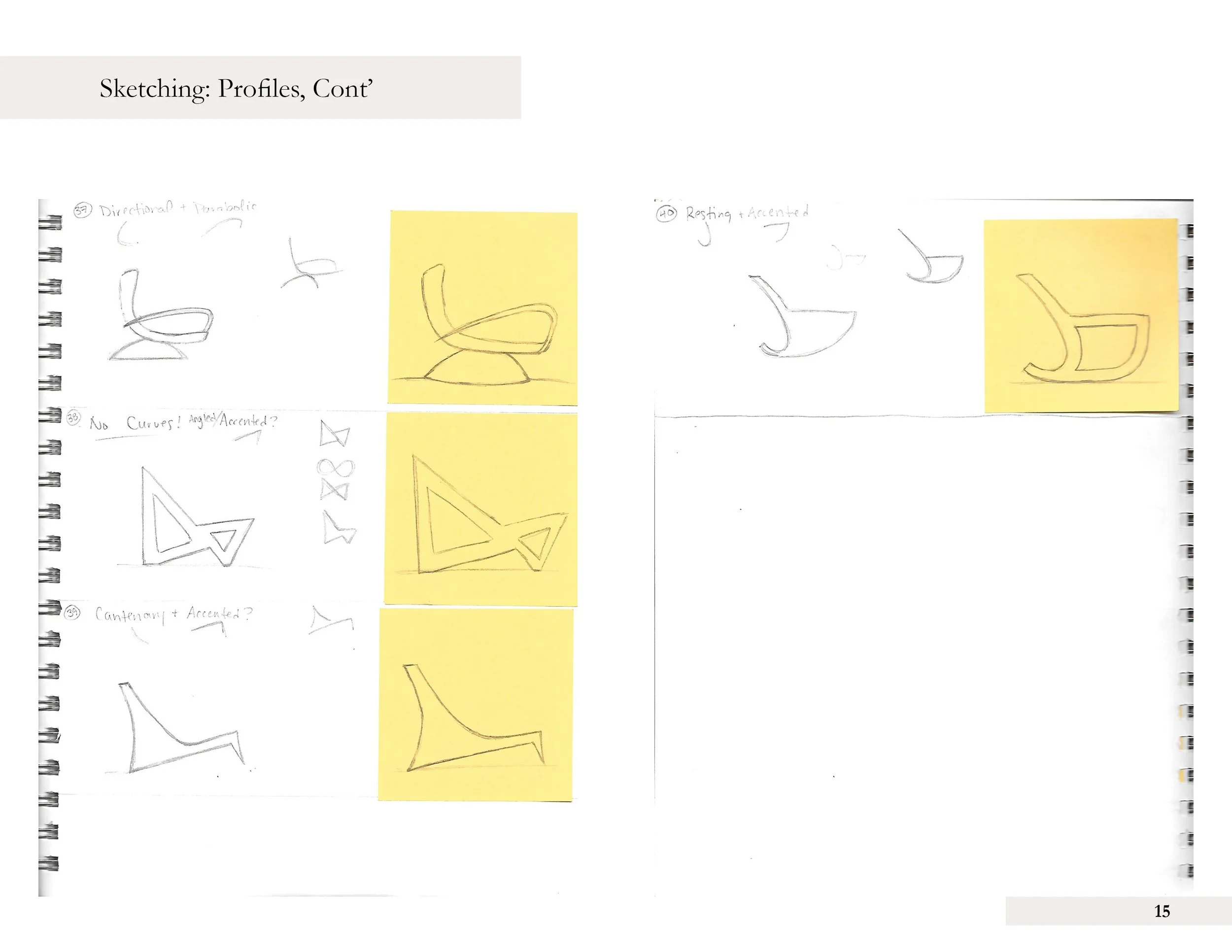 I wanted to design a chair that was as interesting to look at as it was functional. This final design includes ample amounts of storage space and has a dramatic silhouette to draw in attention from anywhere in a room.