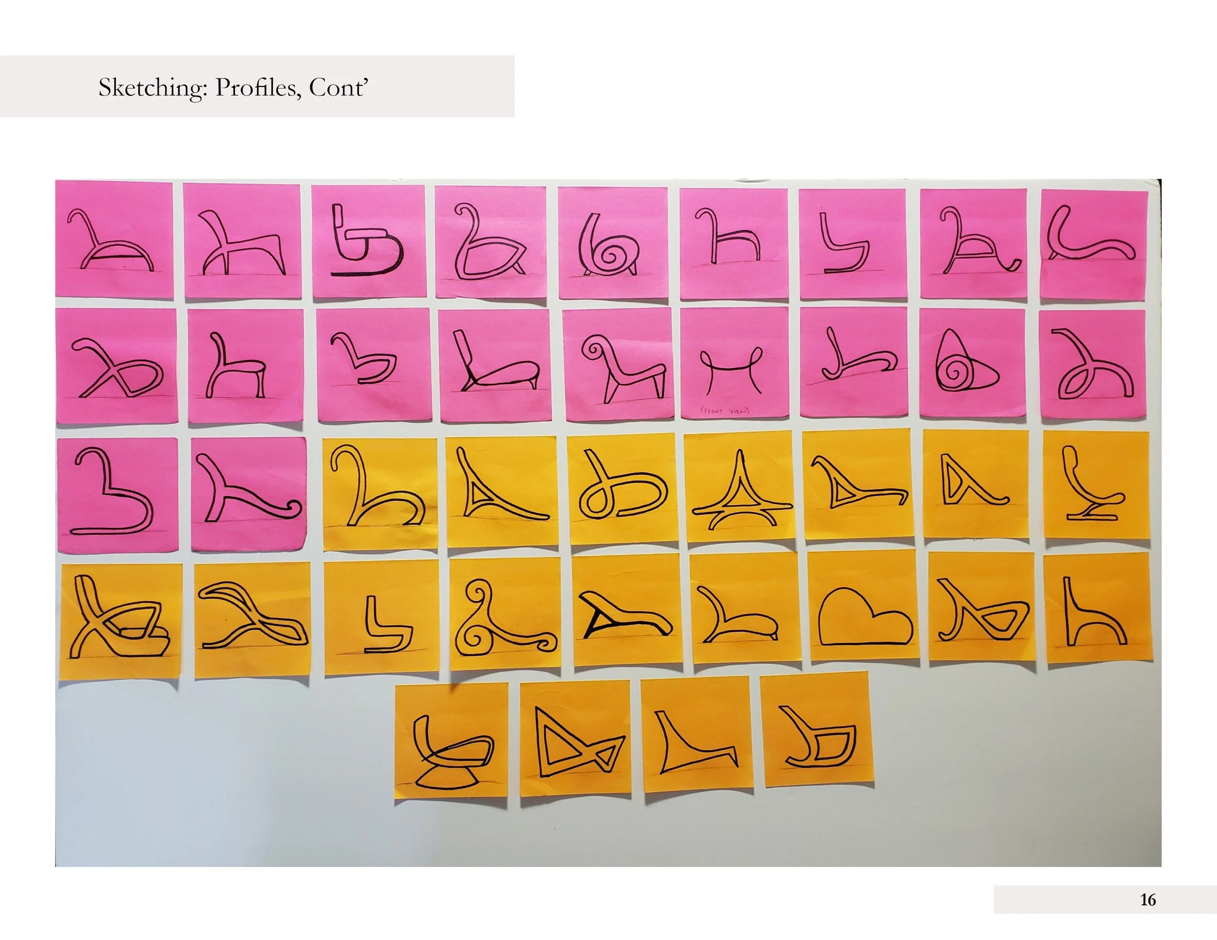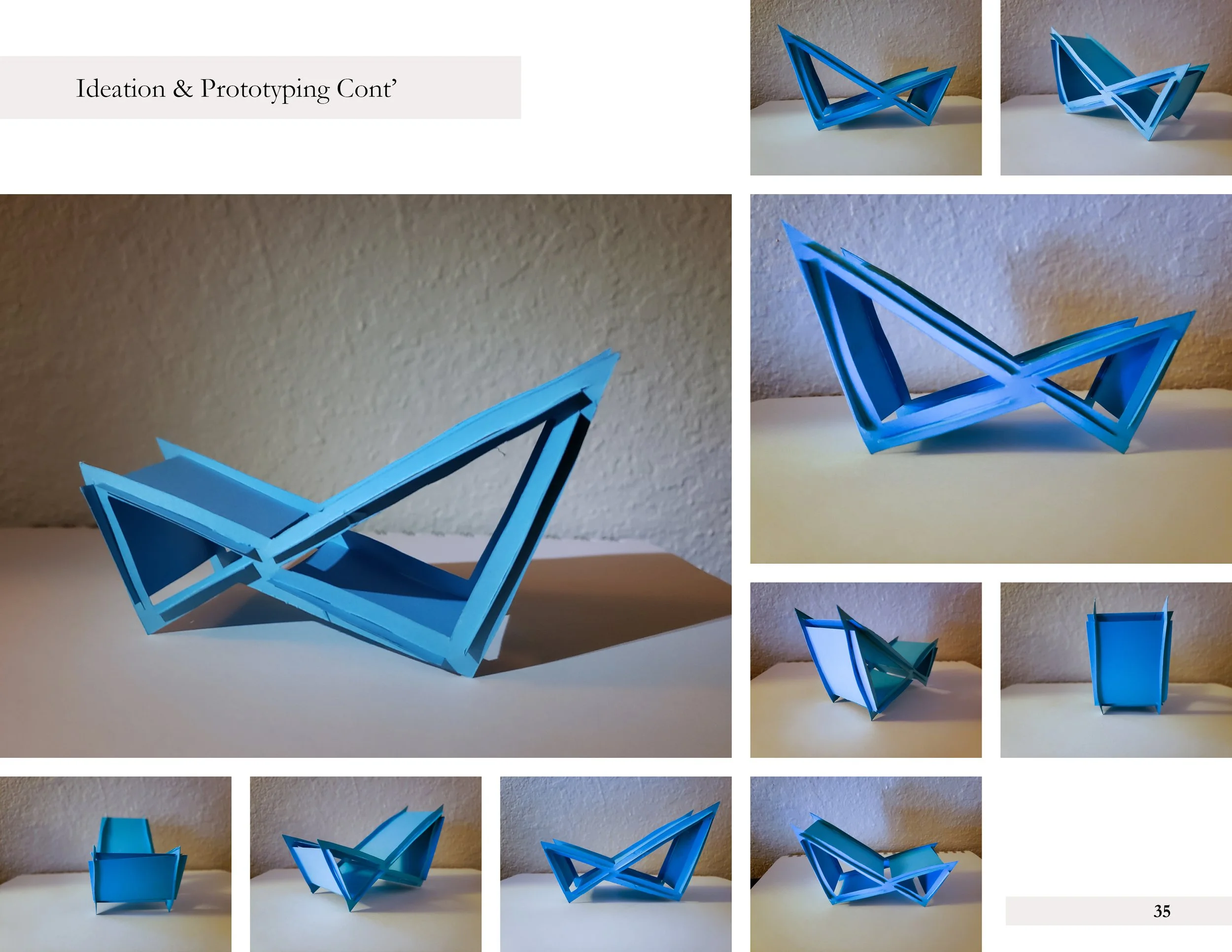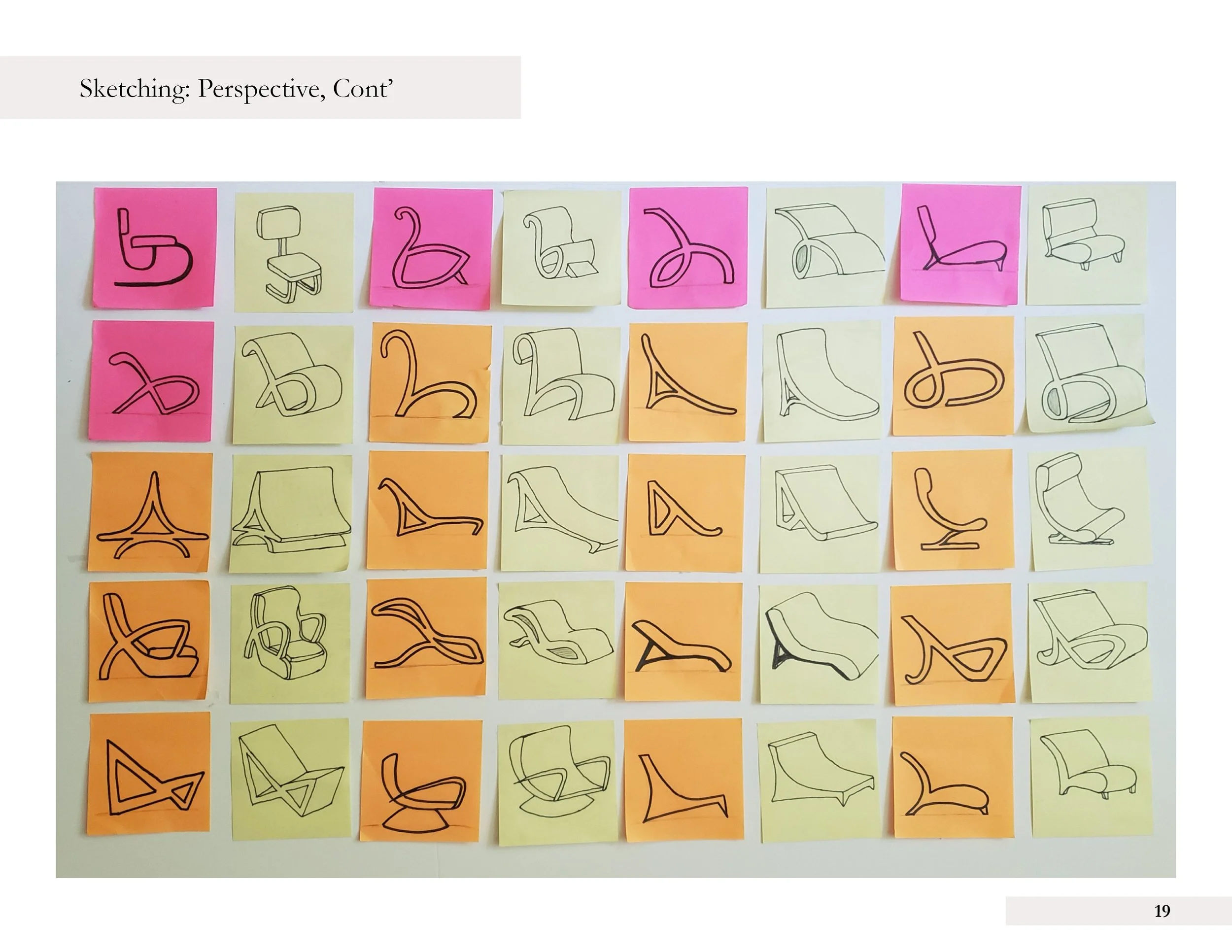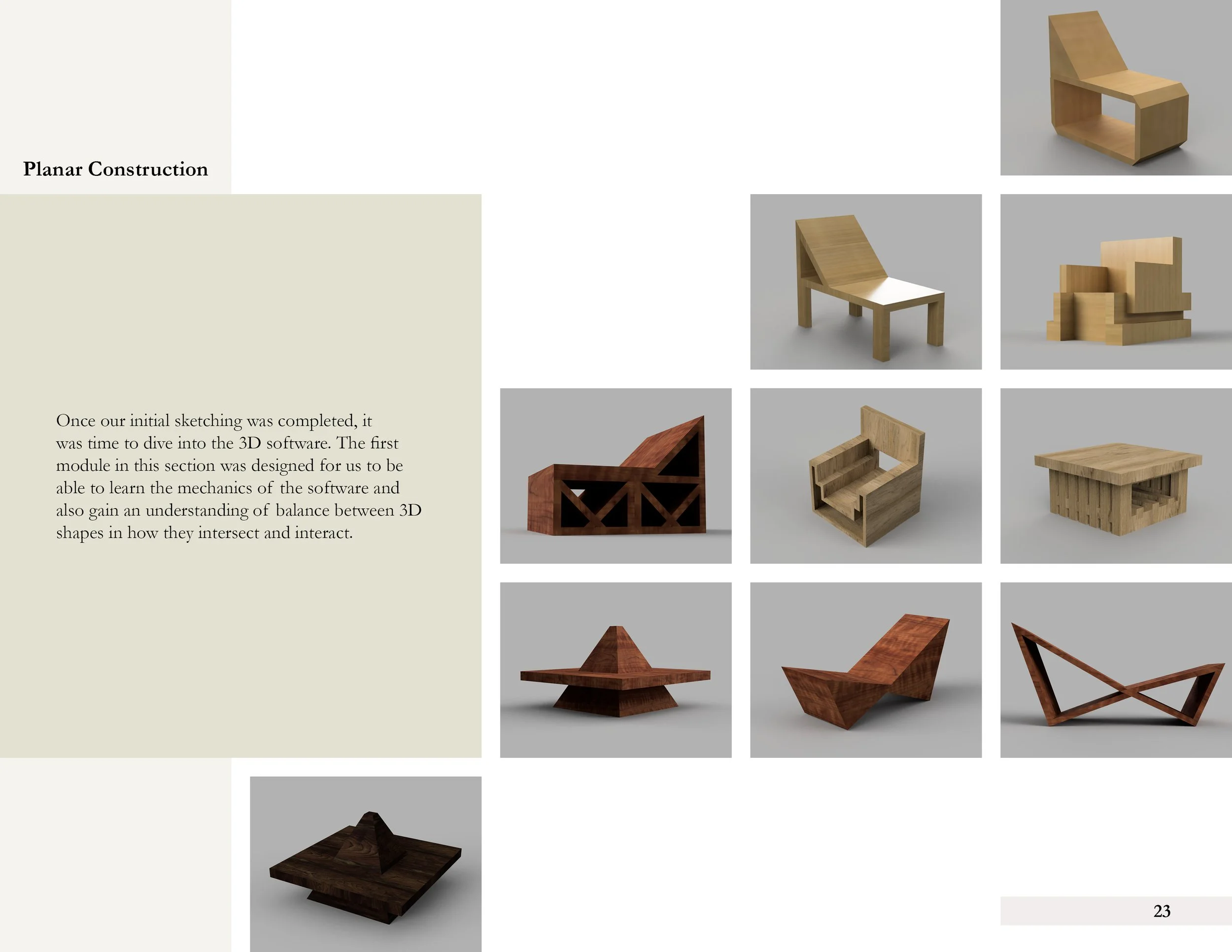 I wanted to design a chair that was as interesting to look at as it was functional. This final design includes ample amounts of storage space and has a dramatic silhouette to draw in attention from anywhere in a room.